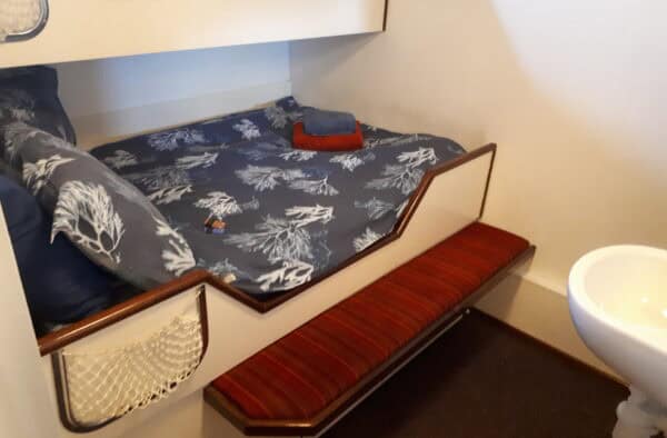 Each cabin has a mirror, bedside reading lamps and wardrobe for storage and hanging clothes. Hand and bath towels are supplied for all guests and there are hand soap dispensers in each cabin. All cabins are warm and cosy each having a thermostat controlled radiator. All our duvets and pillows are hypoallergenic and our bed linen is cotton. There is natural light coming in through a porthole in all cabins.