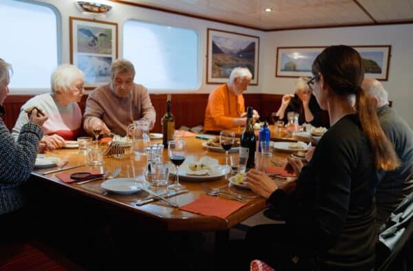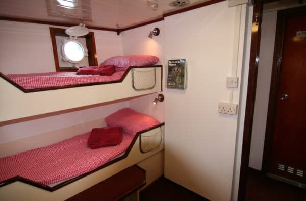 There is also a separate drying room for wet weather gear and boots. The cabins have electric plug sockets so you are able to charge any of your electrical equipment during the day. However, you can not charge devices overnight as the generator and engine will be off so that passengers can enjoy the peace and tranquility of the location.